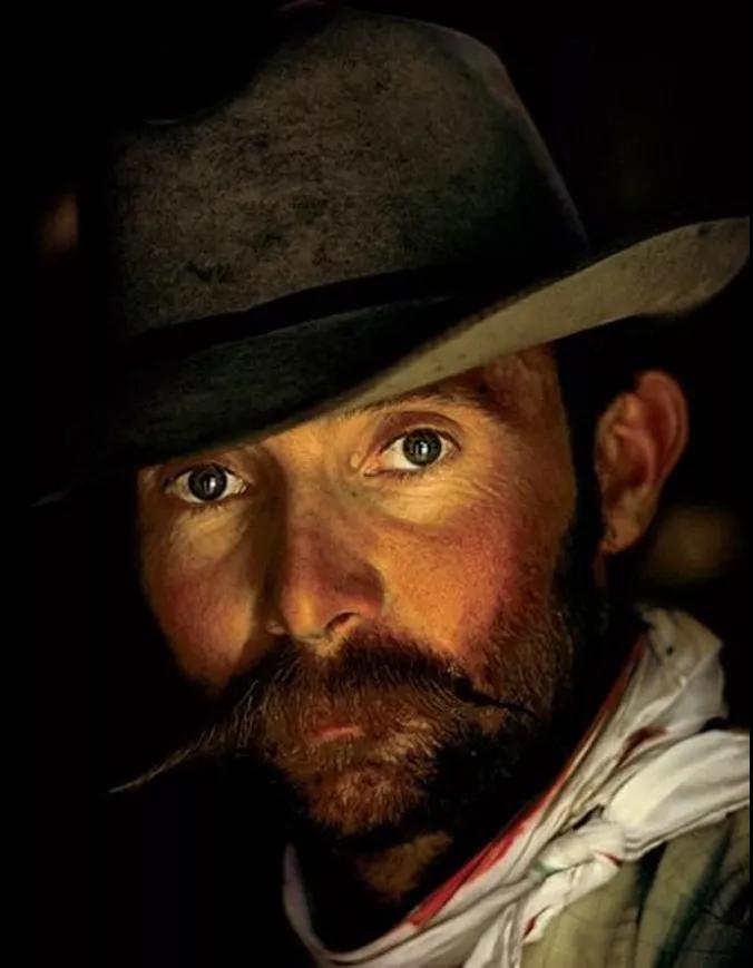 人像通常使用柔光拍攝,這樣可以令模特放松,柔化紋理,并讓模特的眼睛產(chǎn)生交流。在這張令人難忘的人像作品中,光線扮演了主角,將觀眾的視線引至牛仔的雙眼,光線來(lái)自側(cè)面,剛剛能夠照亮牛仔的帽子,對(duì)高光區(qū)曝光,而非陰影區(qū)。
