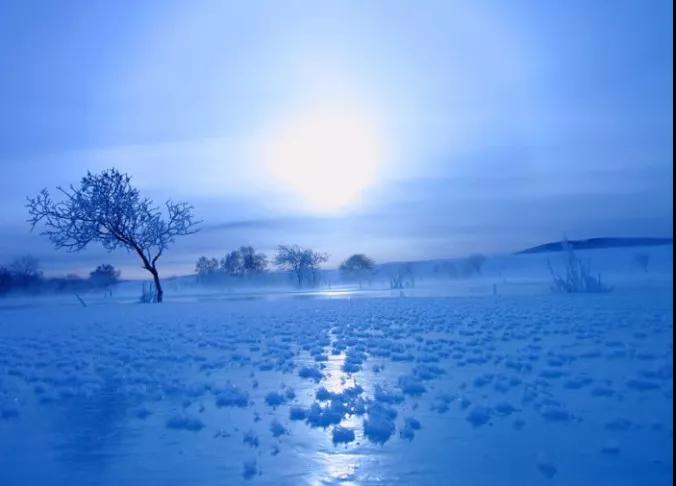 攝影師的這幅風(fēng)景作品以出色的冷調(diào)藍(lán)色而成功。照片中的每一處都透露著冬季、和平、安靜的意味。早晨,逆光中的冰原,結(jié)冰的河面上有很多不知名的小草小樹(shù),清晨的寒霧籠罩著他們,雖然太陽(yáng)被云層遮擋,但畫(huà)面卻呈現(xiàn)出一種神圣與美麗。