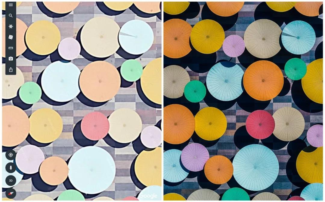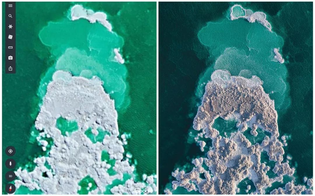 下列圖片中左圖為谷歌地球截取,右圖為實(shí)際拍攝。
