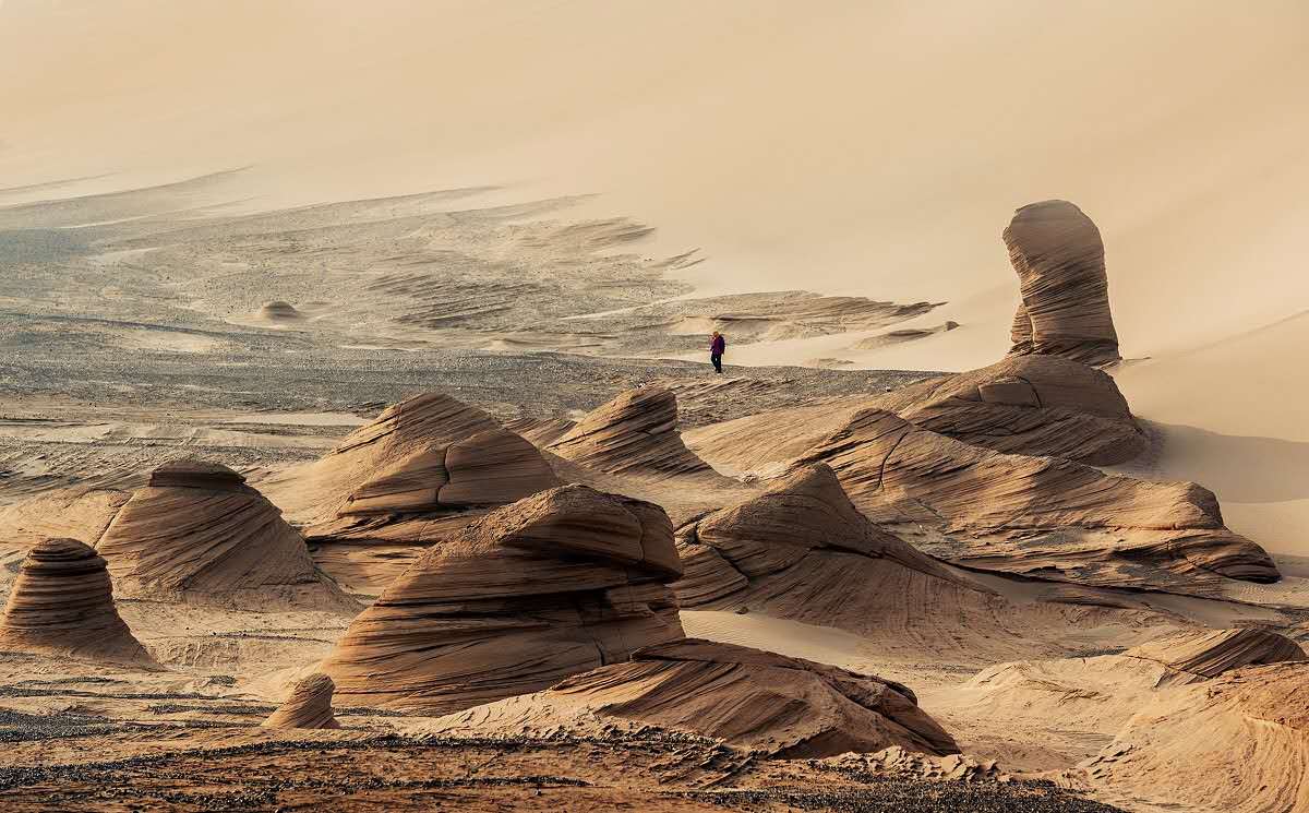 早抵達(dá)哈密東站前往游覽電影《無人區(qū)》的主要拍攝地【五堡魔鬼城】(車程單程約1.5小時參觀約1.5—2小時),它是風(fēng)和沙的雕塑藝術(shù),形態(tài)各異的土堆屹立在空曠的大沙漠上,土堆渾身上下清晰地記載著歲月洗禮的年輪,傲骨凌風(fēng)的身軀驕傲地向你講述著生命的意義;
