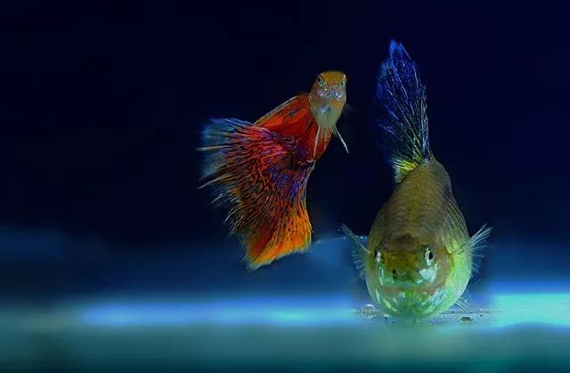 針對魚缸的魚兒,我們主要對魚兒主體進(jìn)行布光,而不是背景。這樣背景就會完全欠曝接近純黑,而魚兒則可曝光正常,加上閃光相比自然光也會讓細(xì)節(jié)更加銳利、色彩更加飽和。