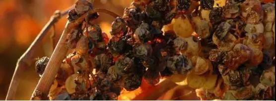 但是,在適當(dāng)?shù)臈l件下,它卻能產(chǎn)生一種叫做“貴腐菌”(Noble Rot)的理想感染狀態(tài)。世界上許多最優(yōu)質(zhì)的甜葡萄酒都是由這種毛茸茸的、被霉菌覆蓋的干癟的葡萄釀制而成的。