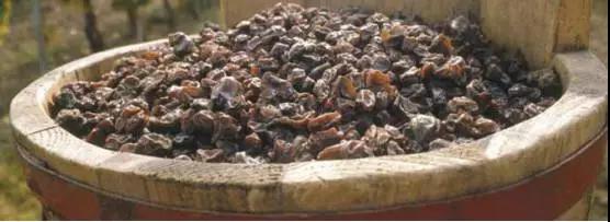貴腐葡萄經(jīng)挑選之后,壓榨出來的葡萄醪已經(jīng)非常少了,有時一株葡萄藤的果實榨出來的汁液還不到100g(這也是貴腐酒如此昂貴的另一個原因)。