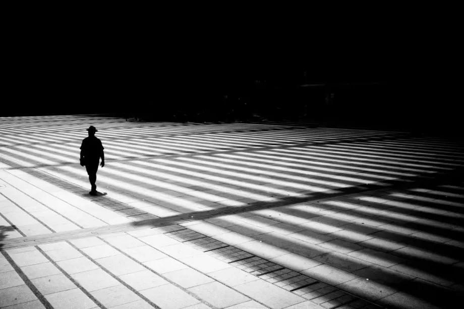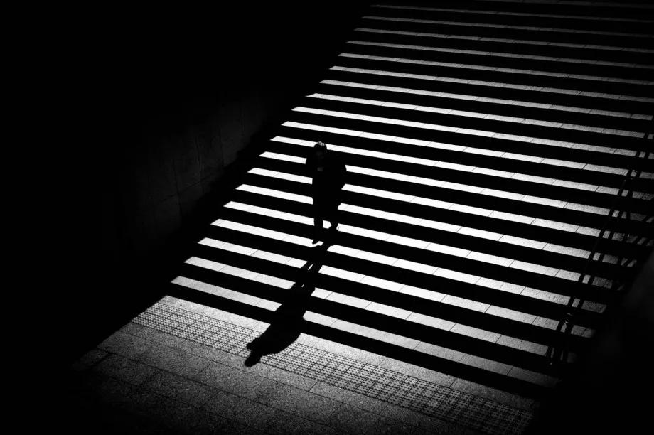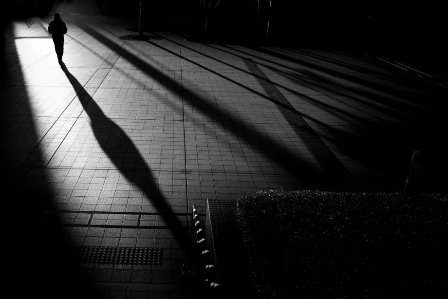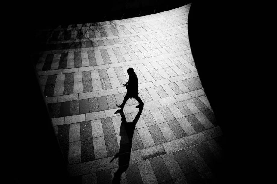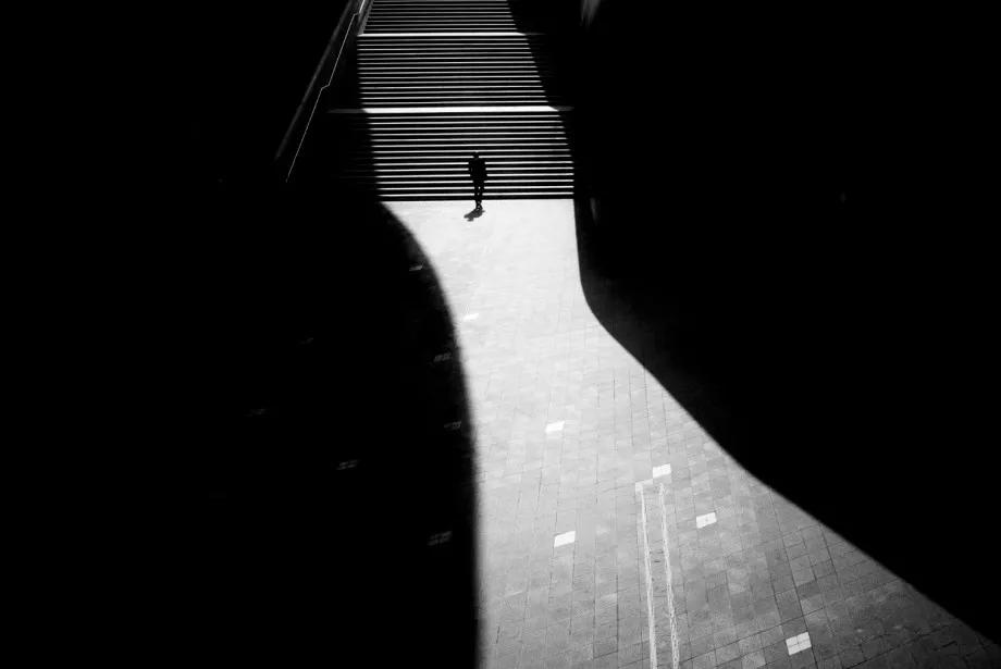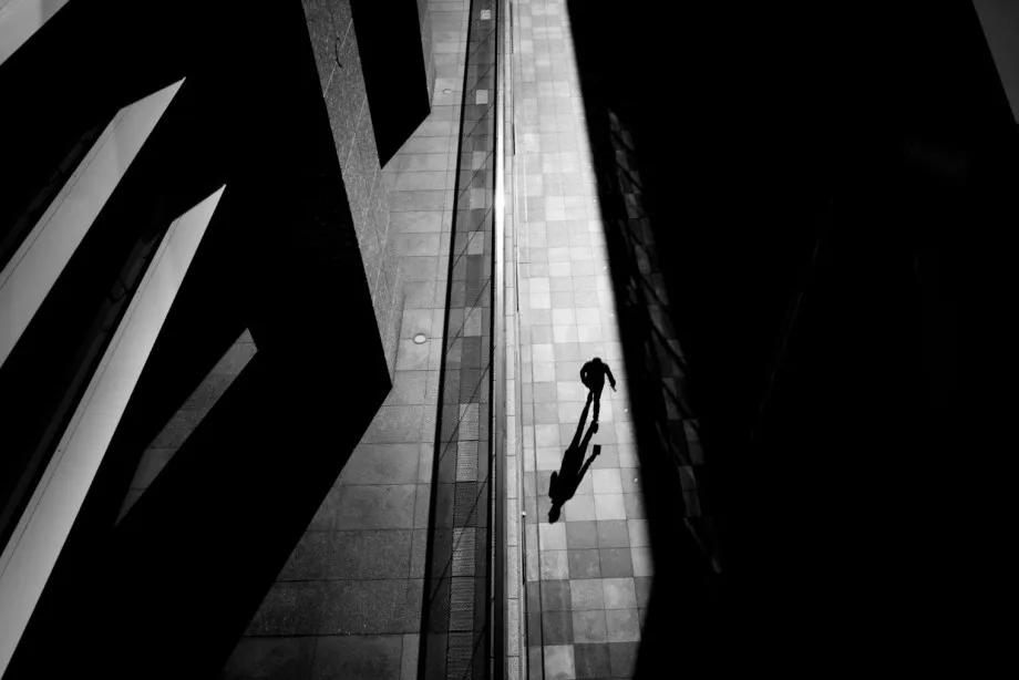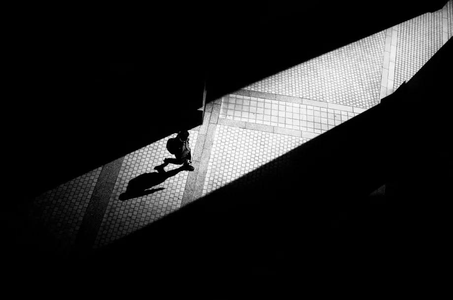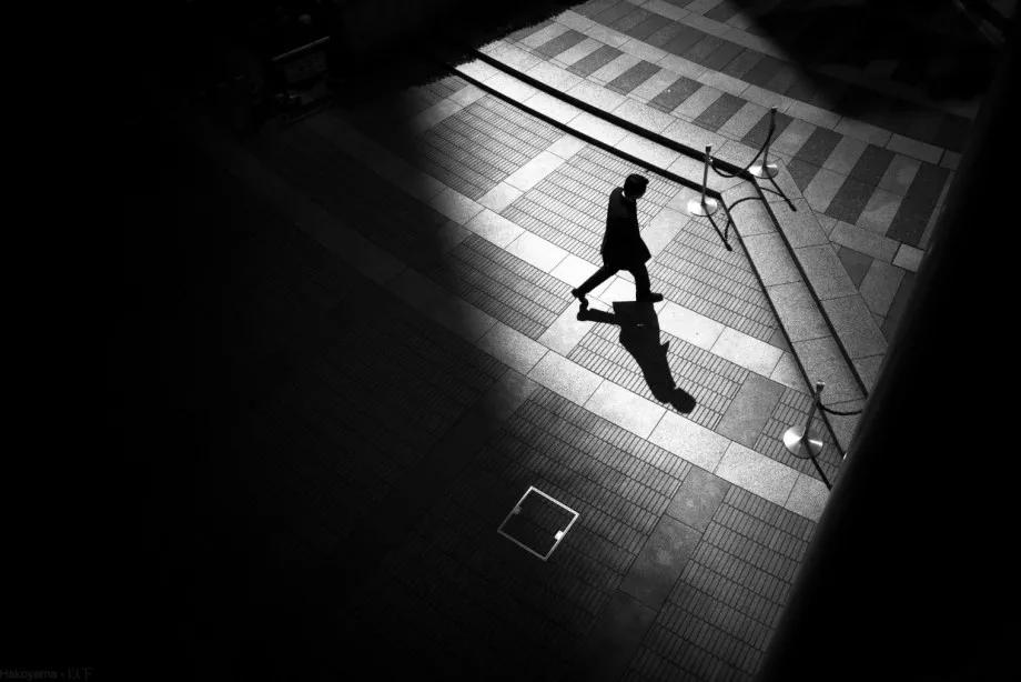 攝影圖片:攝影師Junichi Hakoyama十分擅長(zhǎng)拍攝高對(duì)比度黑白街頭作品,善于利用場(chǎng)景中建筑物的線條,結(jié)合光影而形成明暗對(duì)比,加上充滿故事性的單個(gè)人物融入其中,便成就影像擁有黑白默片的快感。
