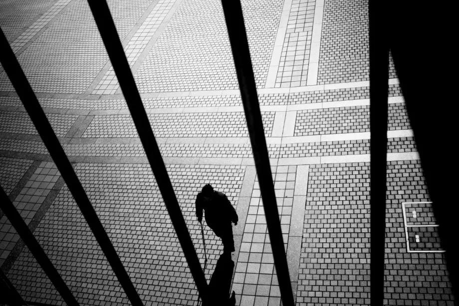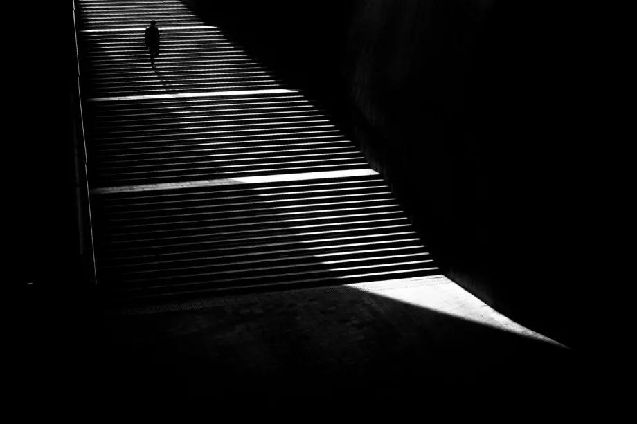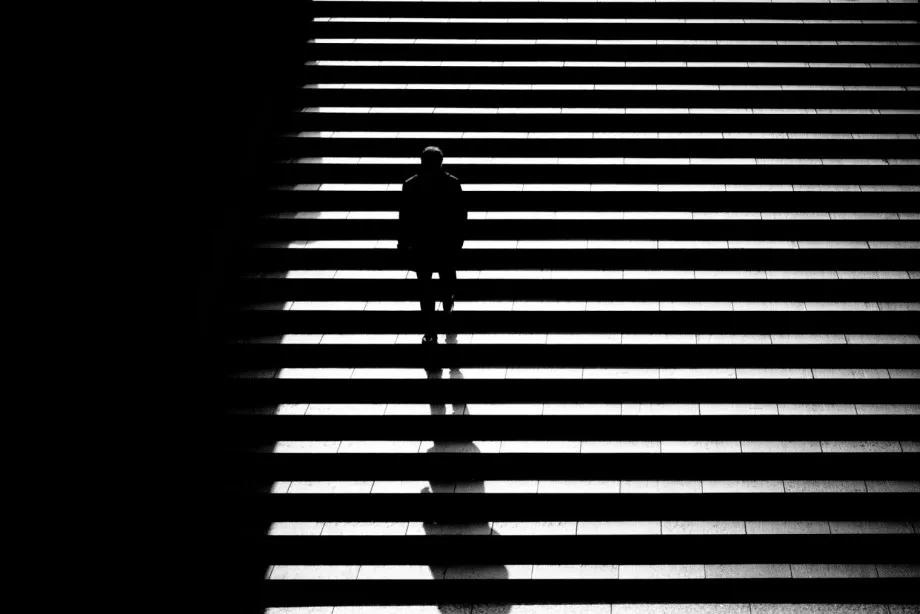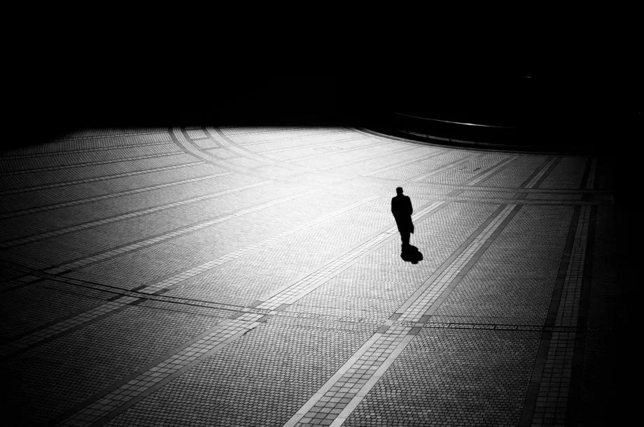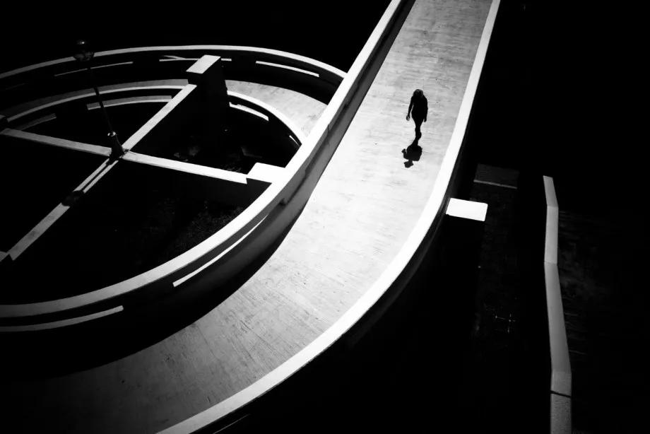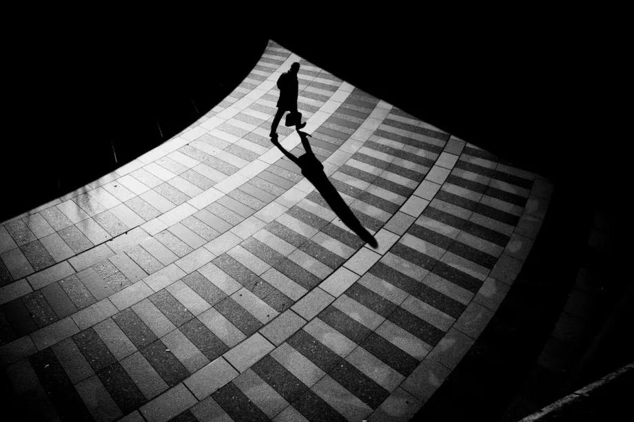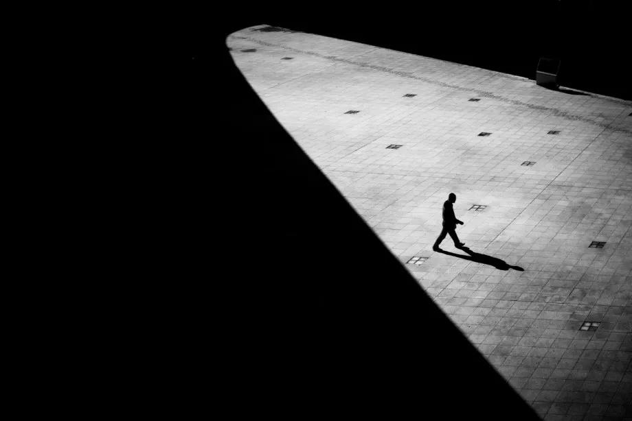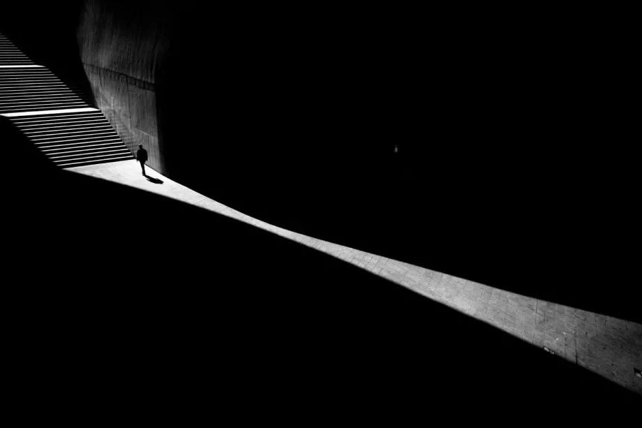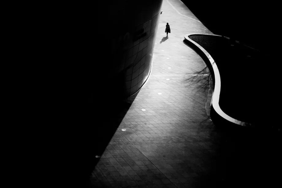 攝影圖片:攝影師Junichi Hakoyama十分擅長(zhǎng)拍攝高對(duì)比度黑白街頭作品,善于利用場(chǎng)景中建筑物的線條,結(jié)合光影而形成明暗對(duì)比,加上充滿故事性的單個(gè)人物融入其中,便成就影像擁有黑白默片的快感。