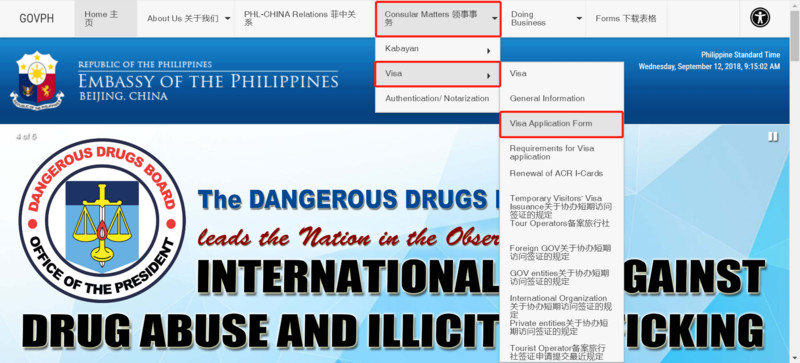 可點擊訪問菲律賓駐華大使館,選擇“領(lǐng)事事務(wù)→Visa→Visa Application Form”下載表格。