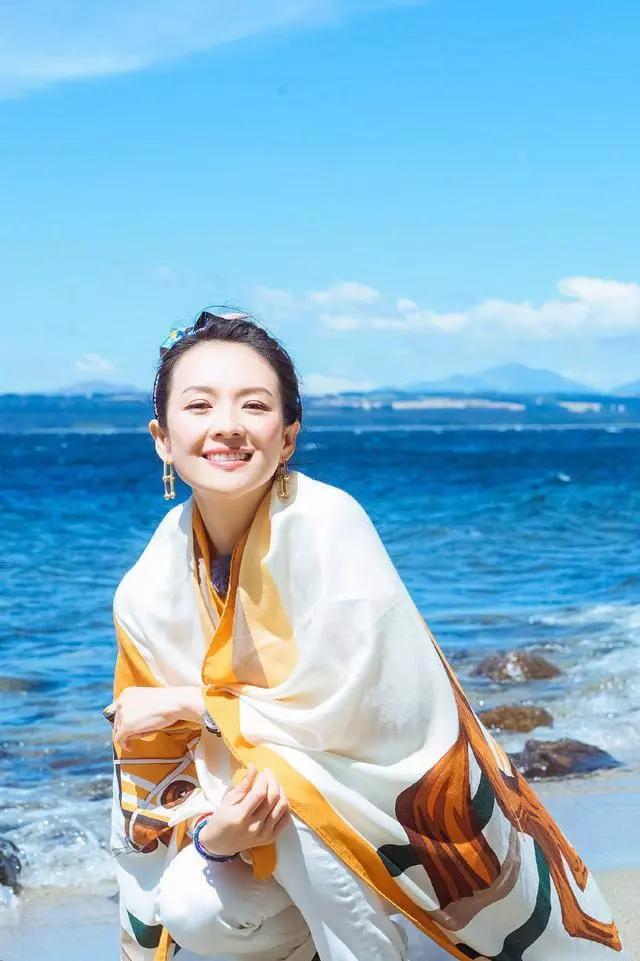 媽媽們拍照總喜歡拿著絲巾去花叢、樹叢中,也不管什么構(gòu)圖,導(dǎo)致整個畫面非常的凌亂。再來看看章子怡,人家也是選擇了海邊,但是卻避免了人多的地方,整個背景就是藍(lán)色的天空和大海,鏡頭特寫,主體明確。
