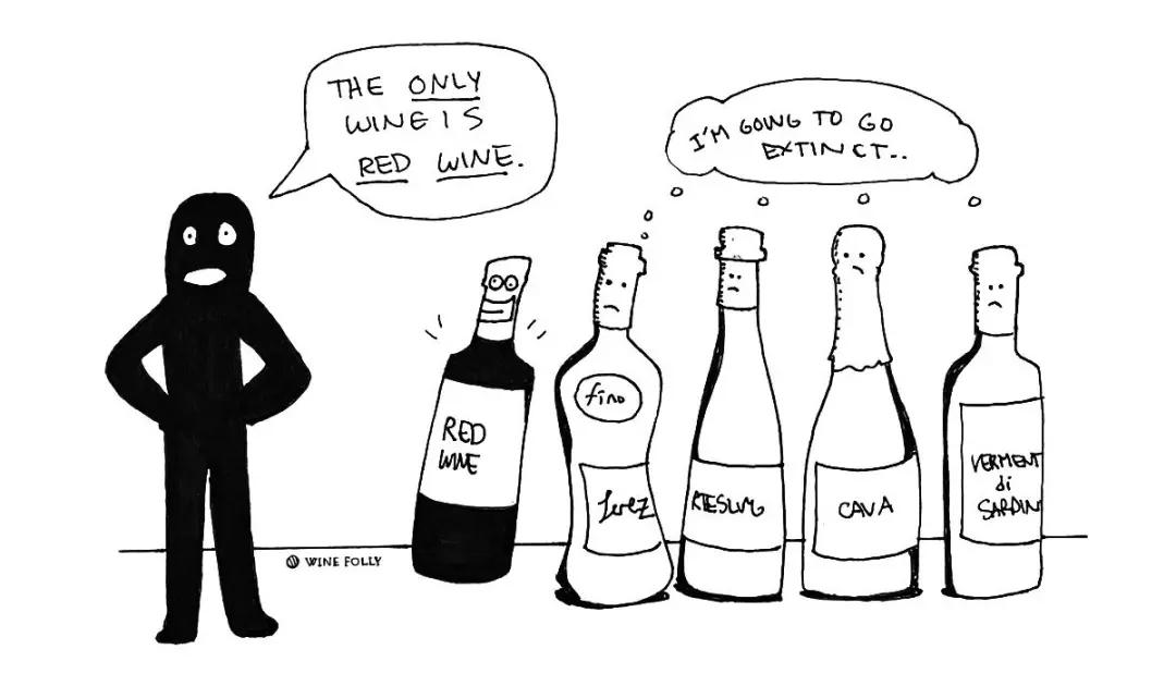 你當(dāng)然可以可勁兒的夸紅酒,我也喜歡紅酒,但也別忘了白葡萄酒,這也算是一種“種族歧視……”
