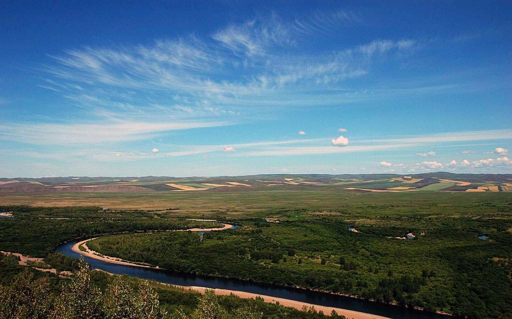 游覽大興安嶺自然生態(tài)展示園、紅豆坡、走幽靜的獵人之路、覽一目九嶺。彎曲而清澈的額爾古納河靜靜地蜿蜒流淌在青翠的草甸上。前往莫爾道嘎鎮(zhèn)午餐,后乘車前住中國冷級—根河市,根河市位于大興安嶺腹地,獨特的地位置造就了豐富的物產(chǎn),后入住酒店