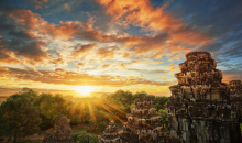 續(xù)往大吳哥王放置打仗所用寶劍的【寶劍塔】彷佛可以感受到當(dāng)時劍拔弩張的氣氛;【巴肯山】賞落日(視時間而定),登上巴肯山頂,遠(yuǎn)眺宏偉的吳哥古城,趁著落日余暉,沐浴在金色陽光中享受著一場名叫「夕陽」的戲;享用晚餐后送回酒店休息;