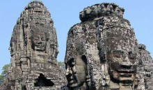 酒店享用早餐后;首先帶您暢游【大吳哥】古跡群·主要景點有:參觀由54座大大小小寶塔構(gòu)成一座大寶塔的【巴戎廟】、每一座塔的四面都刻有三公尺高的加亞巴爾曼七世的微笑面容、兩百多個微笑浮現(xiàn)在蔥綠的森林中、世人稱之為“高棉的微笑”,接著參觀古時皇帝挑選座騎的地方【斗象臺】,廣場對面即是古時走鋼索賣藝表演的地方【12生肖塔】;