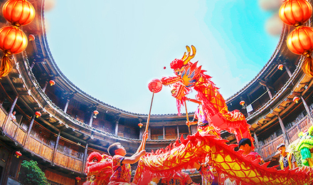 4、人人動手制作年糕,意寓來年人人步步高升;觀看舞龍表演,中國歷來都有以舞龍的方式來祈求平安和豐收的習(xí)慣;再放上鞭炮、焰火,讓您和家人的歡歌笑語,在客家土樓上空回蕩,好不愜意;