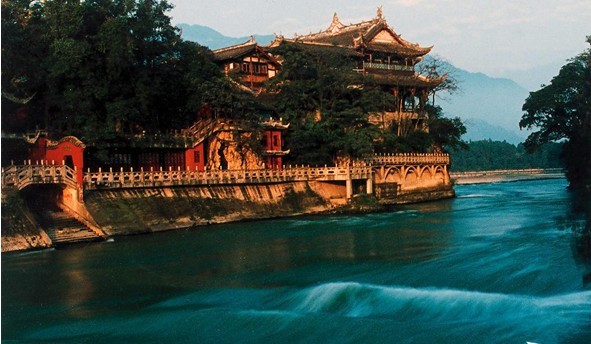 之后來到戰(zhàn)國秦昭王時期(公元前227年)蜀郡守李冰在岷江上修建的中華第一古堰-被列為“世界文化遺產”的都江堰水利工程:寶瓶口引水口,飛沙堰泄洪壩,后乘坐景區(qū)單程觀光車(自理)到達觀魚嘴分水堤,過安瀾索橋,隔著岷江內江觀看在5.12地震中被損壞的秦堰樓、紀念李冰父子的二王廟,登玉壘閣扶梯(自理)觀都江堰全景;