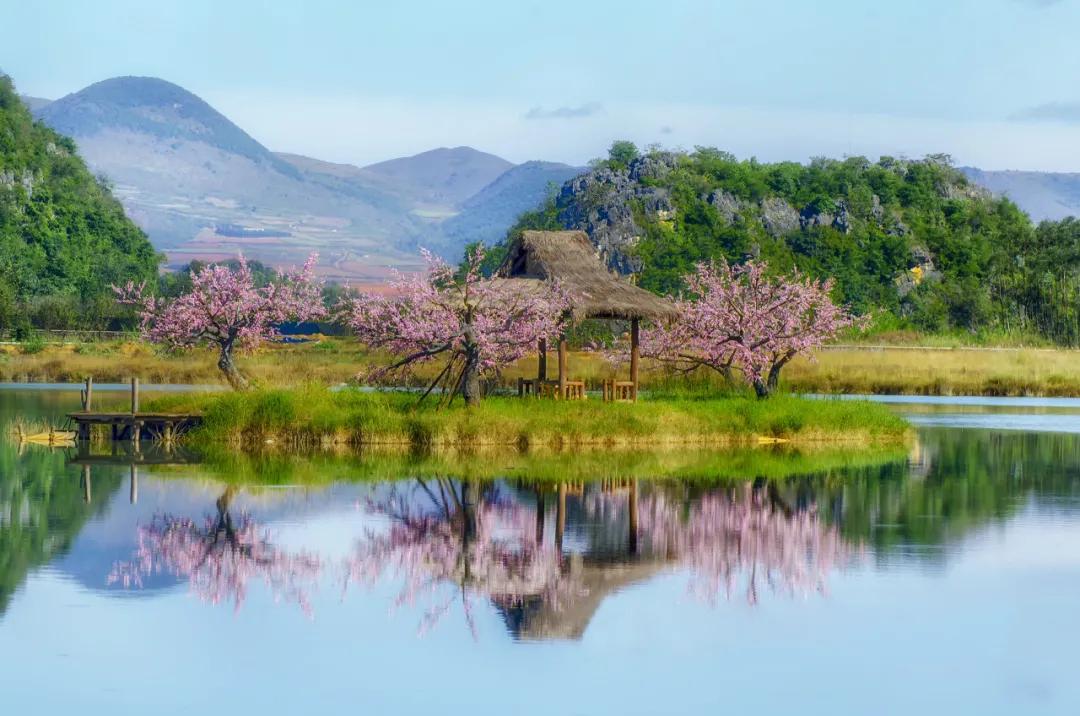 吃完早餐之后我們出發(fā)前往熱播劇《三生三世十里桃花》的實(shí)景拍攝地【菜花箐村】看最美的“小桂林”景致,三生緣起,靜待花期;灼灼桃夭、十里芳華。漫山遍野的“桃花”仙境,這便是上神折顏的避世之處。小橋,孤峰,桃花島…在湖水的倒映下美得特別不真實(shí),恍若人間仙境,置身其中仿佛人在畫中游。