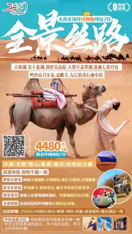 莫高窟門票、張掖丹霞門票(含觀光車)、嘉峪關門票、鳴沙山門票、石油小鎮(zhèn)門票、茶卡鹽湖門票、青海湖二郎劍景區(qū)門票。(莫高窟普通門票構成:門票180元/人+交通費10元人+莫高窟數字展示中心48元/人;莫高窟應急票構成:門票90元/人+交通費10元/人)