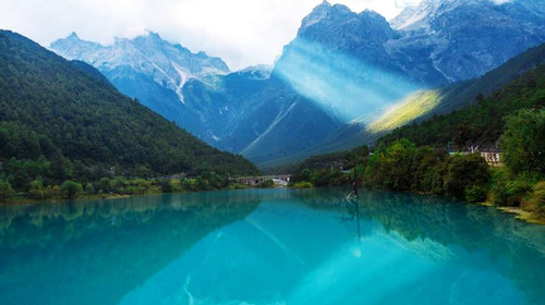 乘坐【云杉坪索道】登臨3240米海拔(高原反應請及時自理雪山氧氣瓶,以免影響行程體驗),抵達納西族神話故事中玉龍第三國的入口云杉坪。游覽【藍月谷】(贈送電瓶車60元/人)藍月谷前身為早前人們所熟知的“白水河”。坐落于巍峨的雪山之下,柔和溫婉,素流交錯,晴時水藍泛綠,雨時潔白無瑕,且山谷呈月牙形,遠看就像一輪藍色的月亮鑲嵌在玉龍雪山腳下,所以名叫藍月谷。河水在流淌過程中因受山體阻擋,形成了四個較大的水面,人稱“玉液”湖“鏡潭”湖、“藍月”湖和“聽濤”湖。