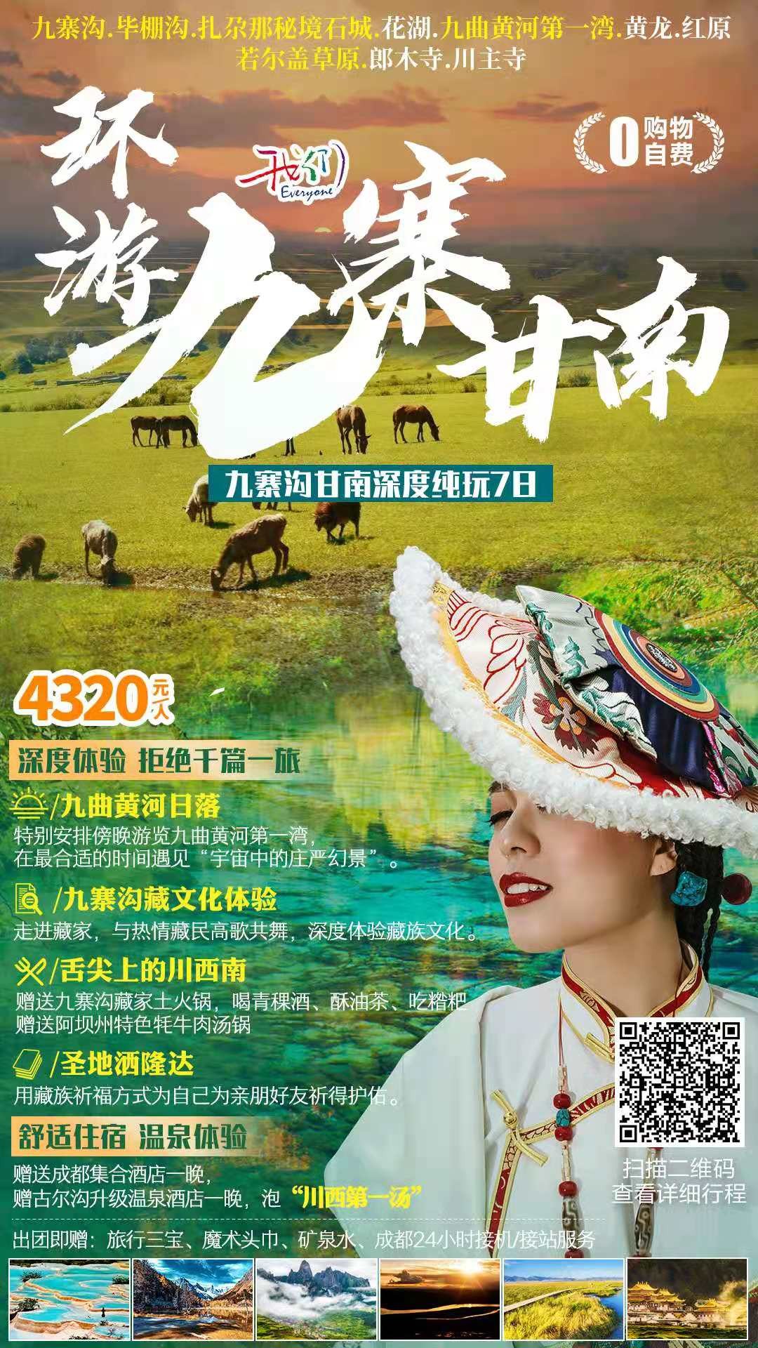 1、門票:含九寨溝門票、畢棚溝門票、若爾蓋花湖門票、甘肅郎木寺門票、黃龍門票、九曲黃河第一灣門票;(優(yōu)惠及退票請現(xiàn)詢報名處。)