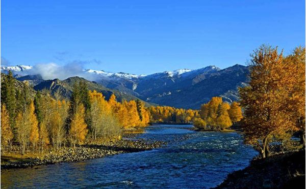 到達(dá)可可托海鎮(zhèn)后享用午餐游覽位于額爾齊斯大峽谷的【可可托海國家地質(zhì)公園】(含區(qū)間車)(游覽約120分鐘)可可托海哈薩克語意思為"綠色的叢林"。蒙古語意為"藍(lán)色的河灣"。正如其名,可可托海的水是藍(lán)色的和綠色的,這里是全國第二寒極。乘坐區(qū)間車途中參觀【白樺林】,野生樺樹林生長在額爾齊斯河凸岸河灣上,嫵媚婆娑,柔軟的枝條舒緩下垂,伴著清風(fēng)纖纖舞動(dòng),綽約若處子,曼妙無比;【神鐘山】,又稱阿米爾薩拉峰,如一口巨大座鐘立于額爾濟(jì)斯河畔,是當(dāng)?shù)卦∶竦木駡D騰。