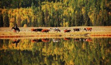 早餐后,乘車前往人間凈土、圖瓦人村落—【禾木景區(qū)】(含門票區(qū)間車,游覽約3小時左右)。清晨,太陽還沒有升起,濃重的霧藹籠罩著整個村莊,樹木、房屋、圍攔,都在霧色中若隱若現(xiàn),白色的霧氣像飄帶一樣纏繞在遠處的山腰,偶爾驚起的烏鴉群急速掠過屋頂。禾木河從村邊流淌而過,在樹林中轉(zhuǎn)了一個彎,繼續(xù)向西奔流,匯入布爾津河。