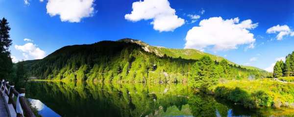 老虎海海拔2298米,長(zhǎng)310米,寬194米,深23米。深秋季節(jié),彩林倒映在清澈的湖水中,斑駁陸離,猶如斑斕的虎紋。深秋季節(jié),湖岸山上層林盡染,姹紫嫣紅的林木倒映在清澈的湖水中,猶如老虎身上斑斕的虎紋。
