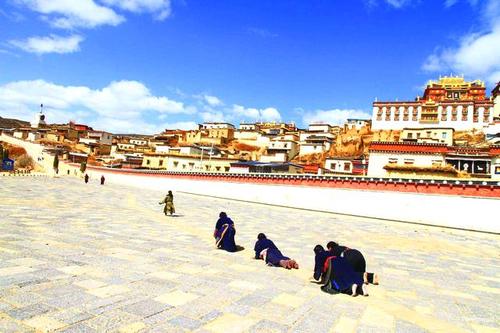 前往【大昭寺廣場(chǎng)】,每年都有眾多信徒從數(shù)千里之外幾步一叩首的到這里來朝拜、祈求降福,如自行付費(fèi)購(gòu)買門票進(jìn)大昭寺,可預(yù)約導(dǎo)游免費(fèi)講解;