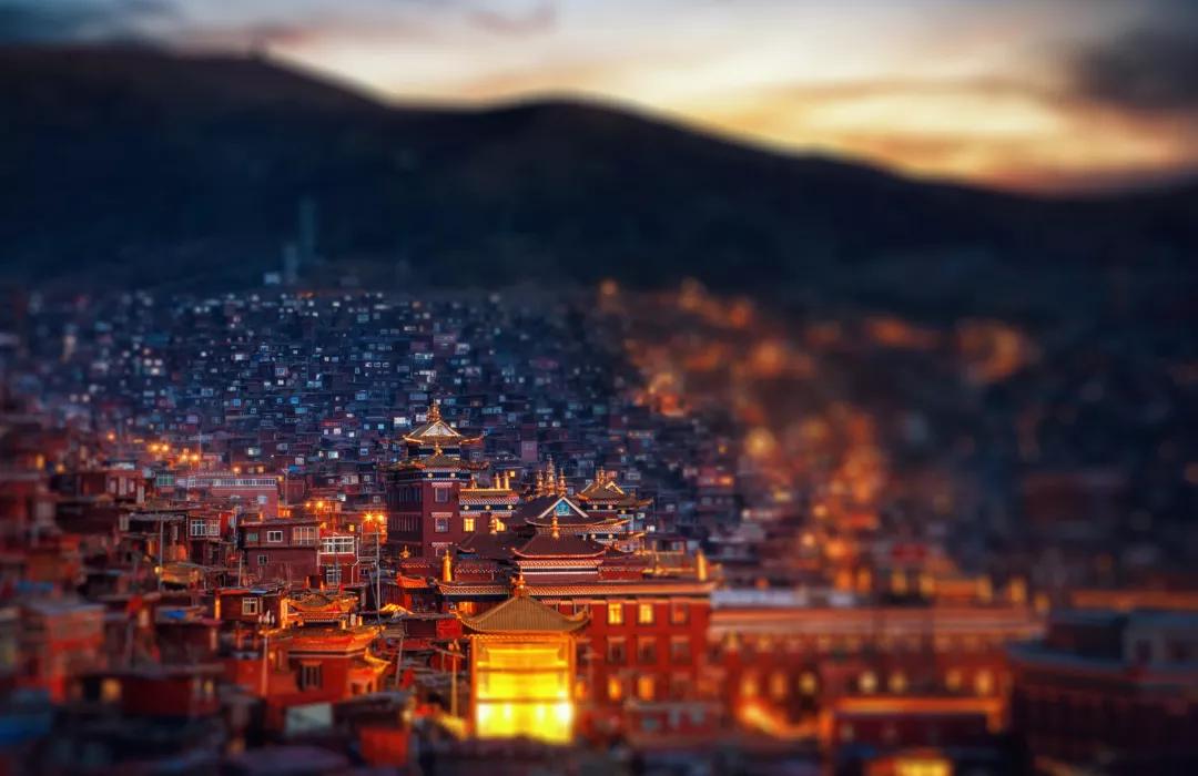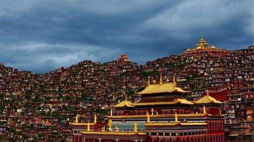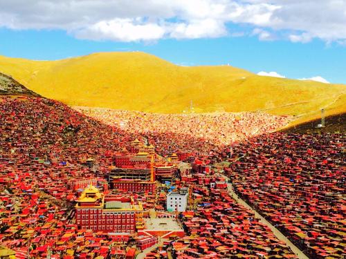 以佛學院的大經堂為中心,密密麻麻搭滿了四面的山坡,