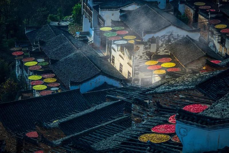 篁嶺,一個隱藏在大山深處奇特的山居村落,因其獨特的曬秋景觀、粉墻黛瓦的徽式古民居將會深深吸引著世界目光。飽經(jīng)滄桑的徽式民居土磚外墻與曬架上五彩繽紛豐收成果組合,繪就了一幅閑適、安詳、恬靜的古村風(fēng)情畫,與遠(yuǎn)山、近水、粉墻、黛瓦相印成趣,感受天人合一的境界。