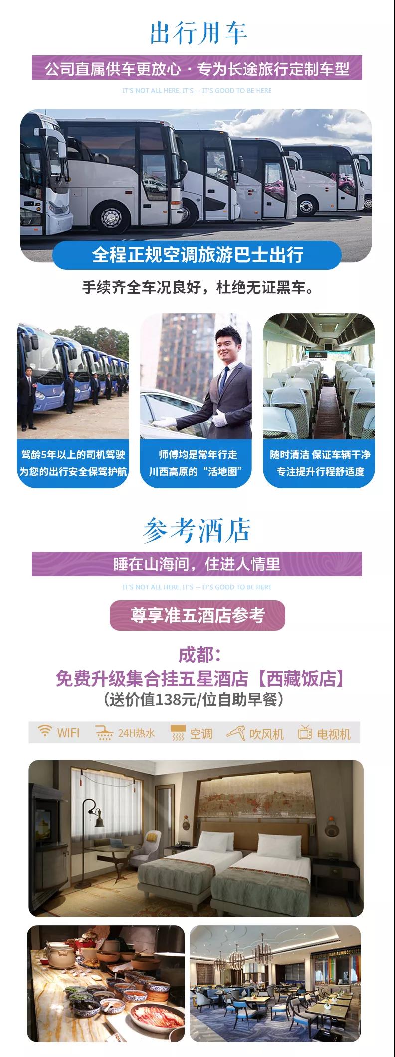 尊享準(zhǔn)五:嘉利尚雅、龍欽云頂、旭日仙閣、阿吾倉、川主國際或同級酒店。