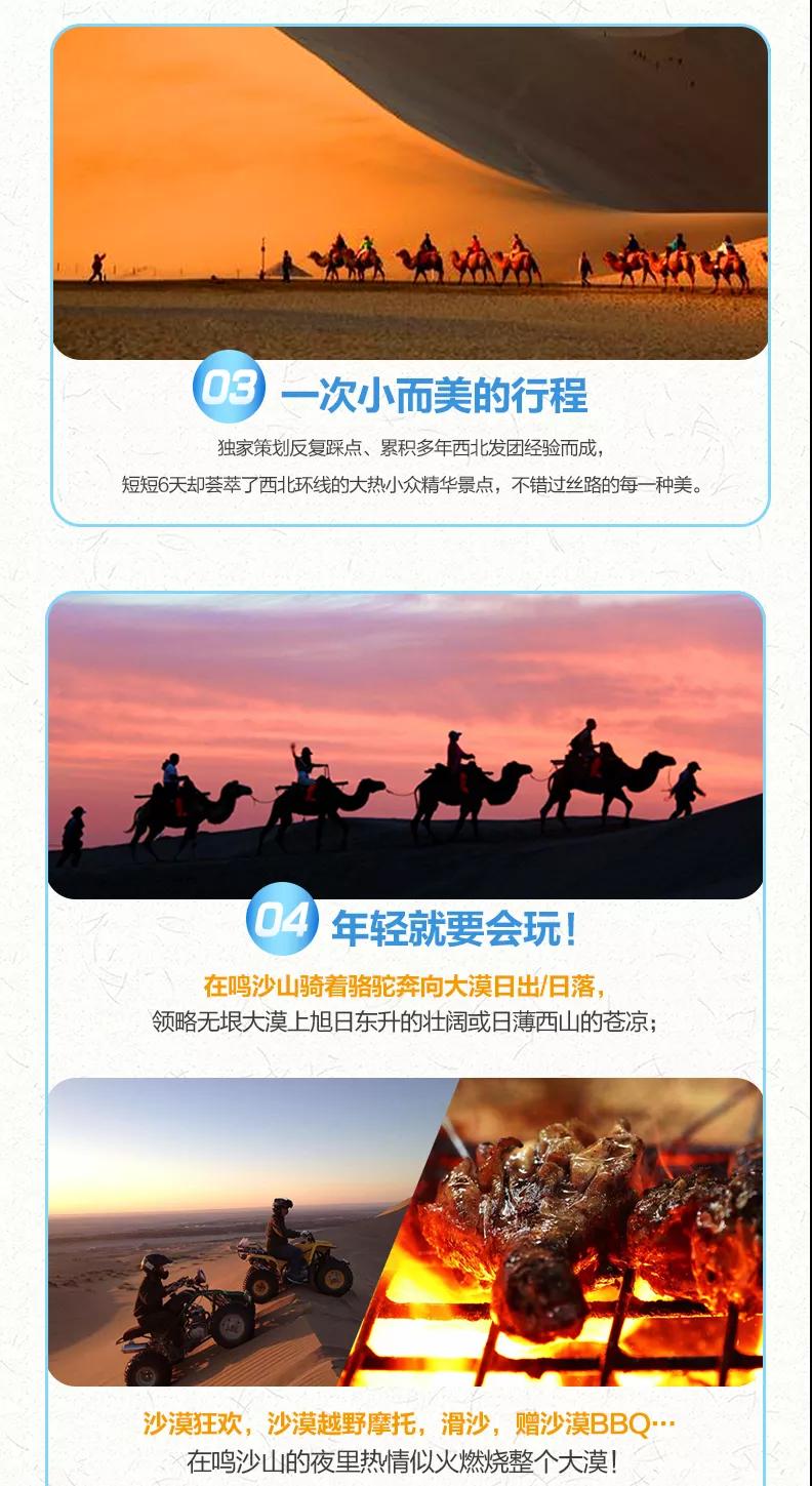 晚上返回敦煌這座千年古城,您還可以選擇自費(fèi)參加被稱為“來敦煌必看的歷史劇演出”《又見敦煌》晚會(huì)或者是去品一品地道的烤全羊,在熱辣火烈的氛圍中感受大漠獨(dú)有的風(fēng)情。