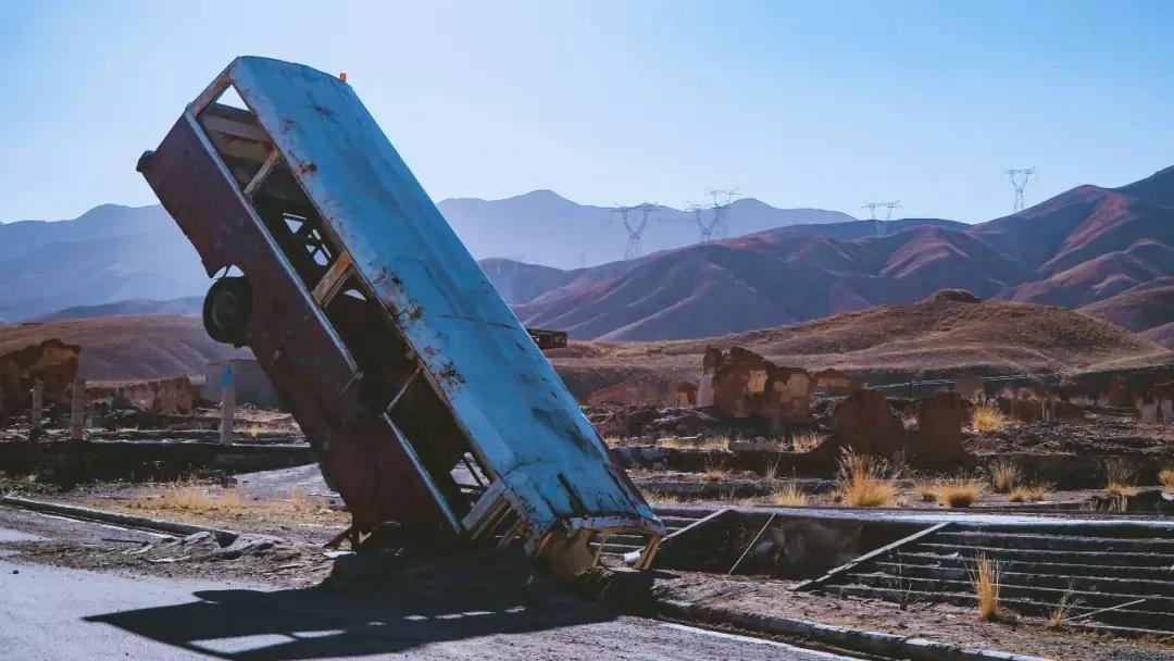 離開翡翠湖,我們來到【阿克塞石油小鎮(zhèn)】。石油小鎮(zhèn)原本是一個(gè)連名字都沒有,只有一個(gè)地級(jí)市的代碼404的神秘小鎮(zhèn),1983年遭到不明原因的襲擊,荒漠中的繁華小鎮(zhèn)一夜之間變成了一座空城。后來因?yàn)榇鬅犭娪啊毒艑友吩谶@里取景,才漸漸為人所知。現(xiàn)在走在小鎮(zhèn)上,還依稀可見當(dāng)初的幼兒園、醫(yī)院、禮堂、清真寺、教堂等建筑的廢墟,襯在一望無垠的戈壁上,顯得更加蒼涼玄幻。石油小鎮(zhèn)就像一座界碑,前方是沙漠,后方則是大片的草原和神圣的雪山,照片上雪山顯的很遠(yuǎn),實(shí)際上就在眼前,從廢墟中看去,仿佛罪魁禍?zhǔn)拙褪沁@座綿延的大山...