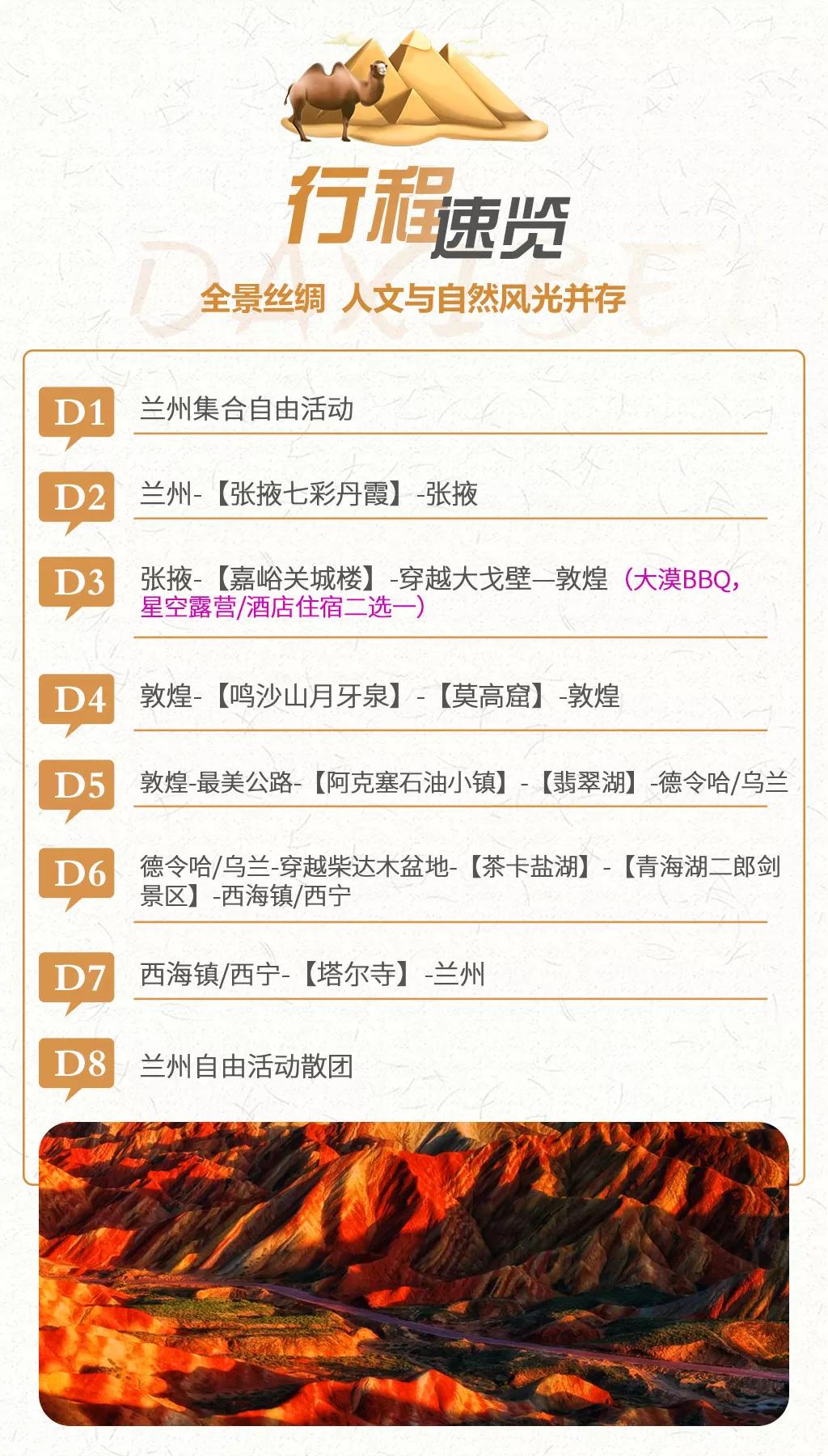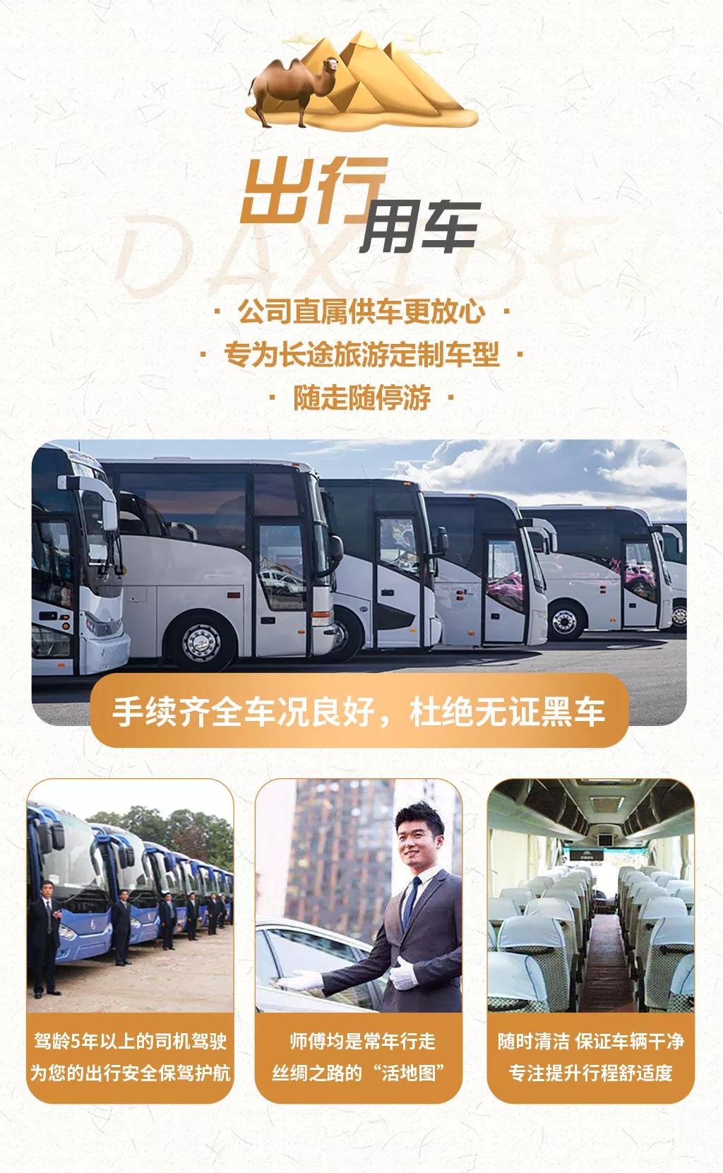 溫馨提示:西北地區(qū)天氣干燥,旅途的過程中請大家多喝水,注意防曬;敦煌《又見敦煌》演出,旅游淡季298元/人,旺季368元/人起;果木烤全羊費用根據(jù)羊的大小決定,由參與活動的游客均攤,一般10人一桌,人均消費160元左右。