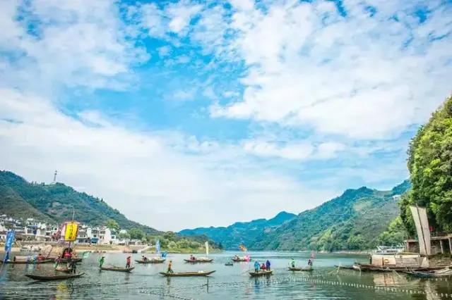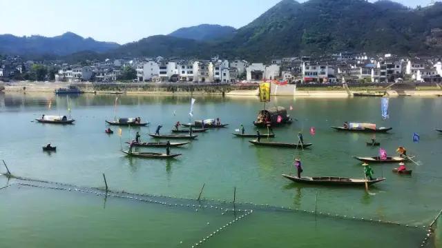 乘游輪游覽新安江百里山水畫廊,心曠神怡,一覽新安江山水畫廊秋色。途中一個游覽項目“撒網(wǎng)捕魚”水上表演,不可不看。