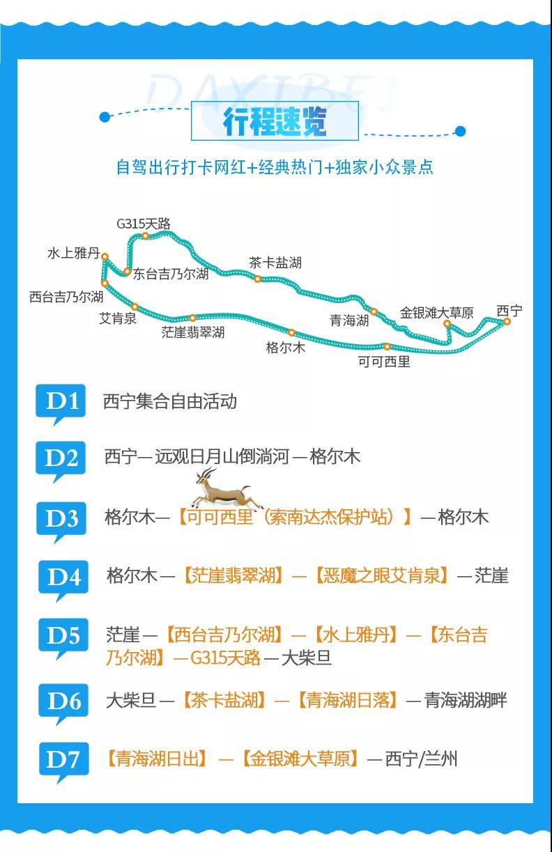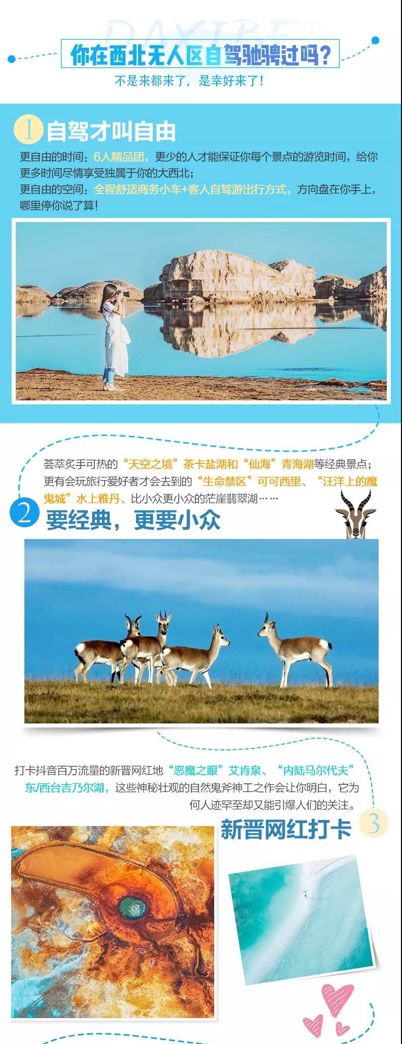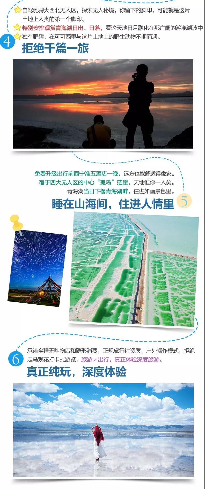 (3)茫崖翡翠湖、東/西臺吉乃爾湖、艾肯泉等尚未設(shè)立為景區(qū),但如當(dāng)?shù)厝耸杖…h(huán)保費(fèi)等費(fèi)用與我方無關(guān),望您諒解。
