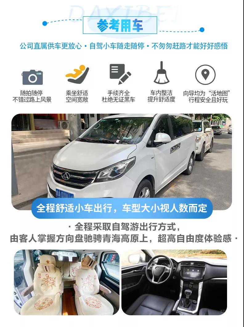 3.自駕提示:本行程全程采取自駕游出行方式,由客人掌握方向盤馳騁青海高原上;為客人安全著想,客人須有正規(guī)合格機(jī)動車駕駛證、具備2年以上駕駛技術(shù)、無重大駕駛事故方可自駕,望您諒解。