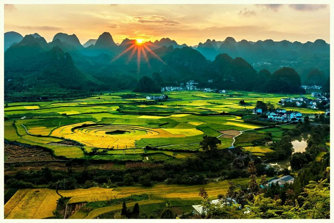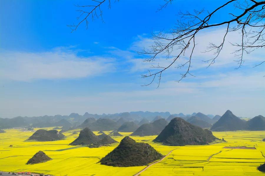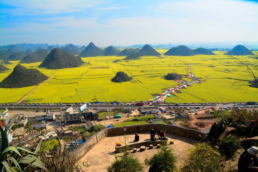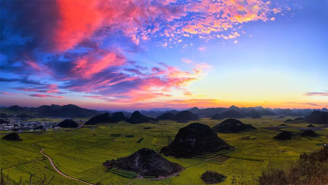 金雞峰在羅平縣城東北方,從羅平縣城沿324國(guó)道北東行12公里,有一處數(shù)不勝數(shù)的錐狀的小山叢,錯(cuò)落有致地排列在壩子里,這就是金雞峰叢。金雞峰是拍攝羅平菜花大景的主要地點(diǎn)之一,在日出和日落時(shí)可以拍到非常漂亮的片片。