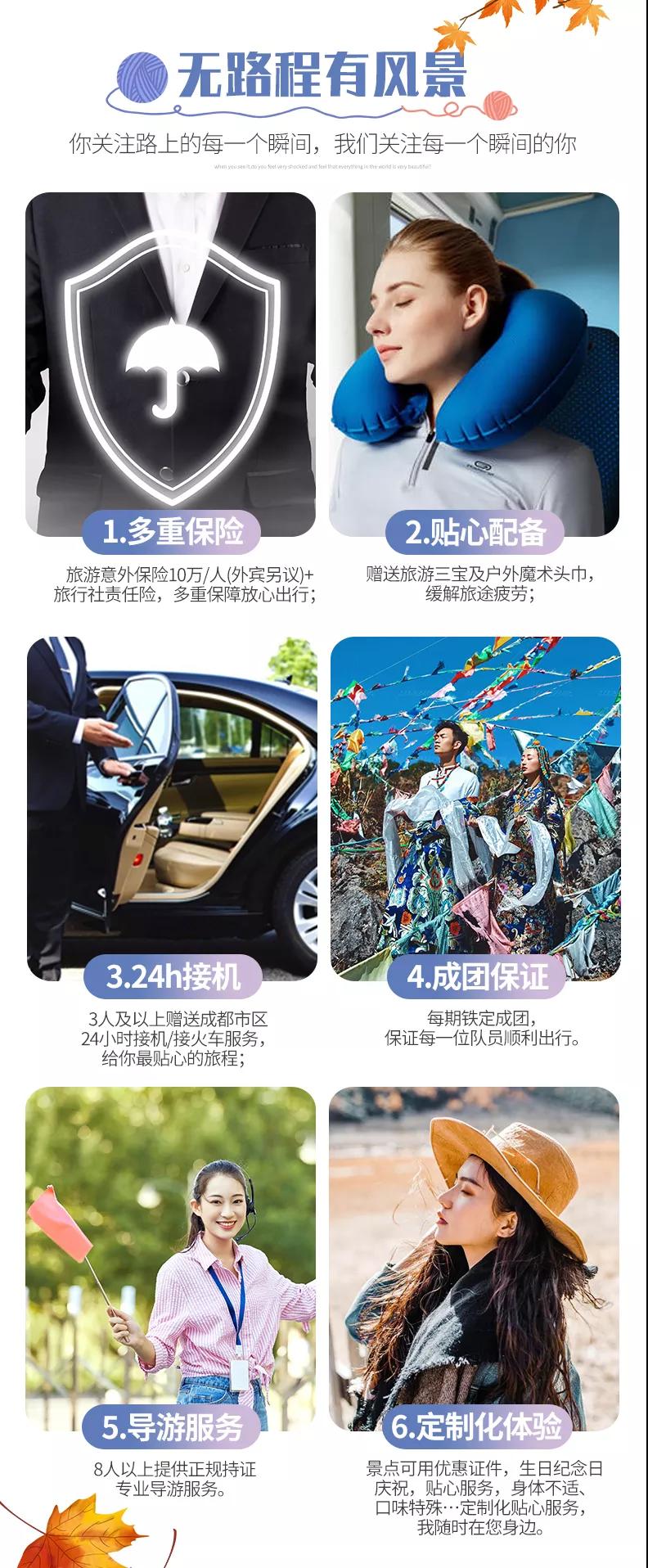 1、關(guān)于車輛交通:目前四川旅游市場(chǎng)8座以下車輛無(wú)法辦理旅游牌照,請(qǐng)游客知悉,以此理由提起的投訴我方拒不受理,望您諒解。