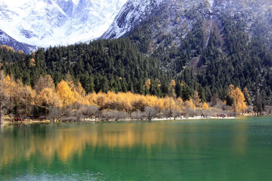 然后我們抵達(dá)被譽(yù)為“四季山水,山水世界”的旅游圣地——【畢棚溝】。秋天是畢棚溝景色最有層次的時(shí)候,遠(yuǎn)眺藍(lán)天山尖已戴白帽,山腰處卻還斑駁著枯黃與灰綠,濃綠的樹、深紅的葉、青青的湖、湛藍(lán)的天,此時(shí)的畢棚溝真正當(dāng)?shù)蒙弦粋€(gè)“五彩斑斕”。沿兩旁塞滿了楓樹、槭樹、鵝掌松、落葉松的小路踱步,遠(yuǎn)瞻奇特的萬(wàn)年冰川,看奔騰不息的瀑布懸飛而下。這是離成都最近的最美秋色,畢棚溝金秋的層林盡染會(huì)告訴你,這一切都值得。