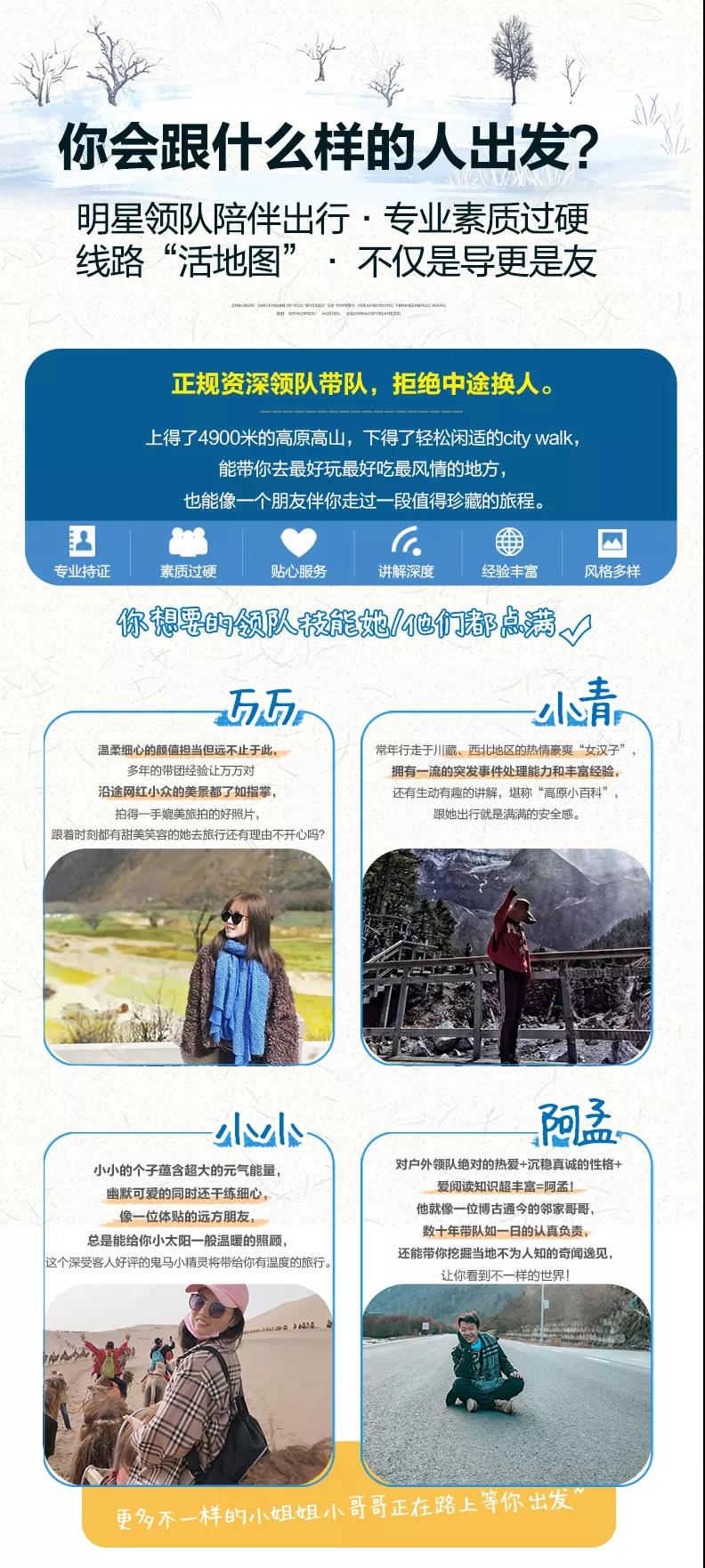 3、沿途系藏族聚居地區(qū),請游客尊重當(dāng)?shù)刈诮绦叛觥⒚袼酌耧L(fēng),遵守景區(qū)規(guī)定。行程若存在景點(diǎn)需騎馬,為您的安全著想,騎馬必須由馬夫牽韁方能騎行,請勿獨(dú)自騎馬或騎馬奔跑,險(xiǎn)路及下坡路必須下馬步行,否則造成的損傷,概由游客自行承擔(dān)。