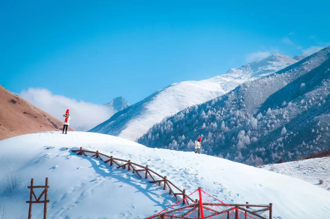 有“四姑娘山后花園”美譽(yù)的畢棚溝(不含景區(qū)觀光車60元/人-上行游客中心-龍王海/下行娜姆湖酒店-游客中心),溝內(nèi)有原始森林、絢麗多彩的植被、雪山溫泉,景觀豐富。冬季在這里我們可以看到覆滿白雪的四姑娘山,遠(yuǎn)眺藍(lán)天高山染白,奇特的萬年冰川,斑駁著枯黃與灰綠的山林;沿兩旁塞滿了楓樹、槭樹、鵝掌松、落葉松的小路踱步,冬天雖然已沒有了紅葉,但枯黃的枝丫卻平添了一番肅殺,也別有風(fēng)味。錯(cuò)過了畢棚溝金秋的層林盡染沒關(guān)系,冬季畢棚溝的群山迭起霧氣繚繞會(huì)告訴你,冬天也值得。