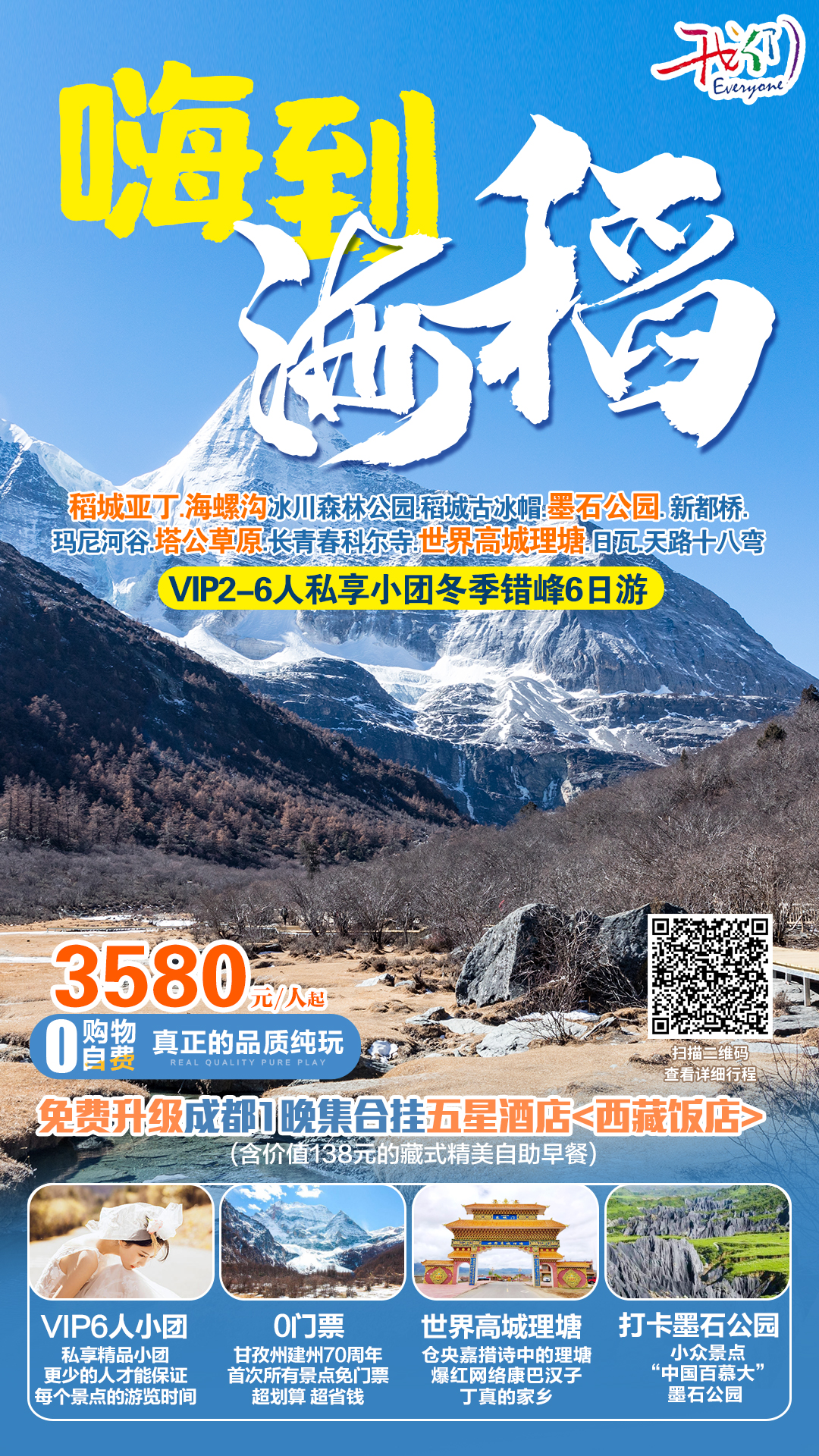 7晚8天!稻城亞丁、四姑娘山、甲居藏寨、墨石公園、海螺溝、丁真家鄉(xiāng)理塘、圣地旅拍、夜拍星空、二進(jìn)亞丁、五大圣地