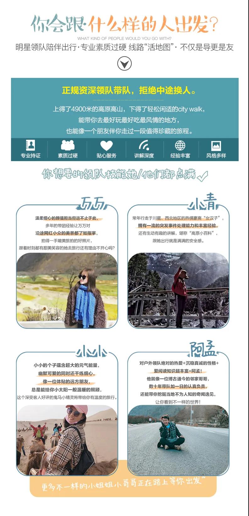 3、沿途會(huì)經(jīng)過(guò)少數(shù)民族聚居族地區(qū),請(qǐng)游客尊重當(dāng)?shù)刈诮绦叛?、民俗民風(fēng),遵守景區(qū)規(guī)定。行程若存在景點(diǎn)需騎馬,為您的安全著想,騎馬必須由馬夫牽韁方能騎行,請(qǐng)勿獨(dú)自騎馬或騎馬奔跑,險(xiǎn)路及下坡路必須下馬步行,否則造成的損傷,概由游客自行承擔(dān)。