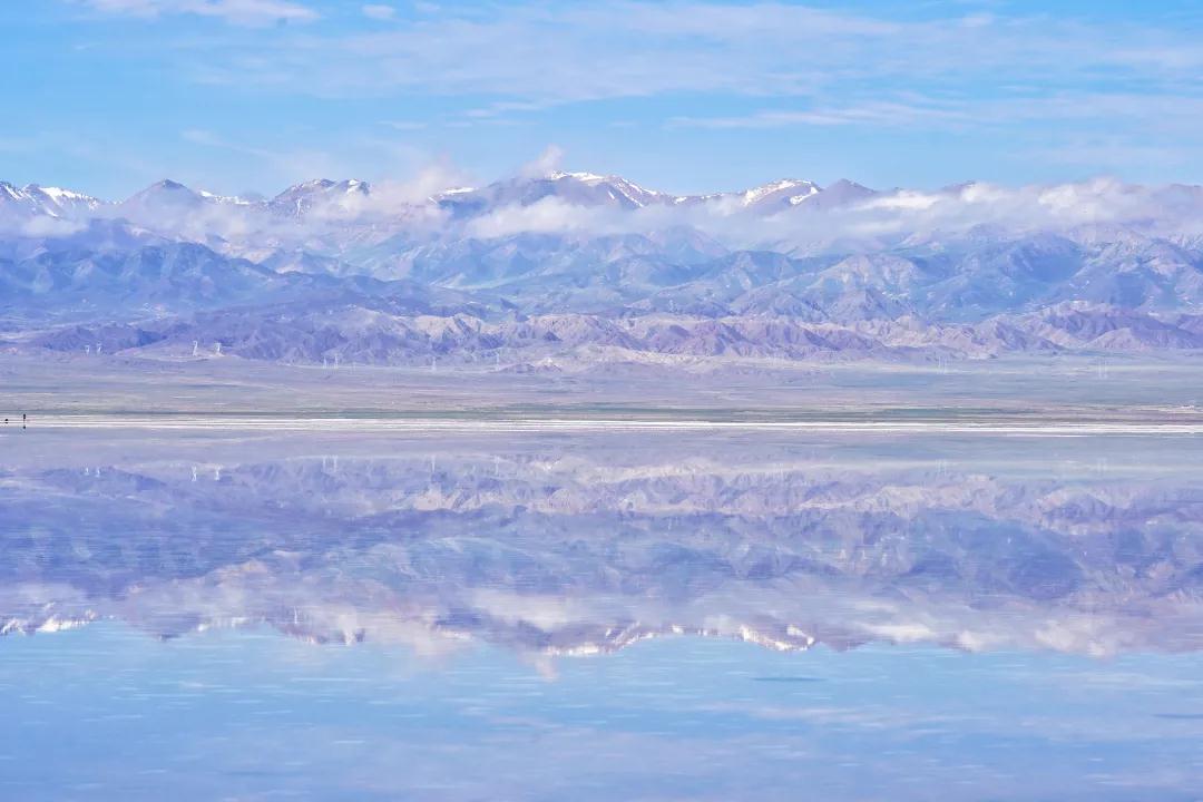 茶卡鹽湖被國(guó)家旅游地理雜志評(píng)為“人一生必去的55個(gè)地方”之一,這里的采鹽歷史非常悠久,湖水含鹽量很大,湖面上會(huì)自然結(jié)晶,一片純白。結(jié)晶之上是一層薄薄的露水,將天空、云朵和對(duì)岸的山都倒映在白色的湖里,非常漂亮,所以也被稱(chēng)為“中國(guó)的天空之境”。大家可以乘坐景區(qū)內(nèi)的小火車(chē)前往景區(qū)深處游玩,如果不乘坐小火車(chē),沿著鐵軌向湖深處散散步拍拍照片也是非常愜意的。