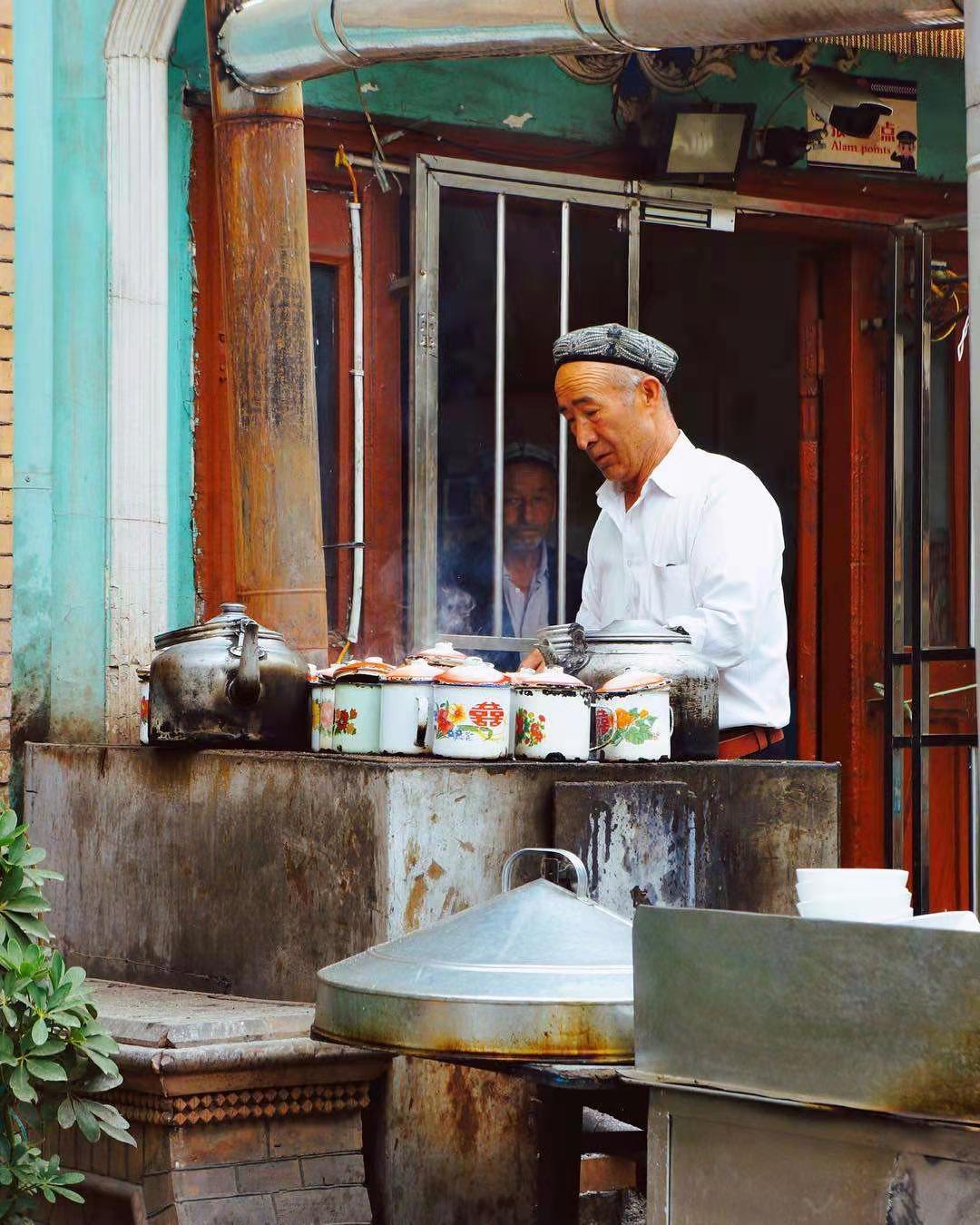 下午去看看【高臺(tái)民居】隨后可以繼續(xù)前往【喀什百年老茶館】靜靜感受下喀什老城的慢生活。這里記錄著喀什百年的歷史,也是《追風(fēng)箏的人》的取景地之一。茶館和樂器表演在二樓,踩著木地板走到樓上你會(huì)發(fā)現(xiàn),這里和其他茶館不同,維吾爾族傳統(tǒng)的大炕,鋪上顏色絢麗質(zhì)感非常好的毯子。屋內(nèi)沒有桌椅,所有人拖鞋坐在炕上,圍成一圈,喝茶,吃馕,聊天。