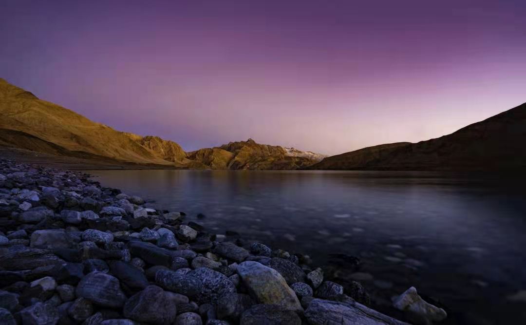 車子行進(jìn)在海拔三千多米的【蓋孜峽谷】中??龉废褚粭l玉帶,沿著蓋孜河在蓋孜峽谷中穿梭著,眼前的景色又變成了綿延不絕的荒山雪嶺。此時(shí)突然出現(xiàn)的美麗湖泊便是【布倫口白沙湖】湖水在帕米爾高原潔靜的陽光下,閃耀著金屬般的光澤。湖水在天空、白沙和雪山的綜合作用下呈現(xiàn)出一種別樣的藍(lán)。