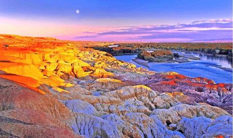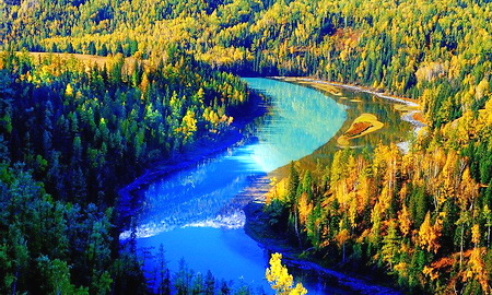 后前往【五彩灘】(含門票)五彩灘一河兩岸,南北各異,是國家4A 級(jí)景區(qū)。我國唯一的一條注入北冰洋的河流――額爾齊斯河穿其而過。與對(duì)岸蔥郁青翠的河谷風(fēng)光遙相輝映,可謂“一河隔兩岸,自有兩重天”。而南岸卻是綠樹葳蕤,連綿成林,遠(yuǎn)處逶迤的山巒與戈壁風(fēng)光盡收眼底后座大巴車前往哈巴河酒店。游覽結(jié)束后前往北屯或福海入住酒店。