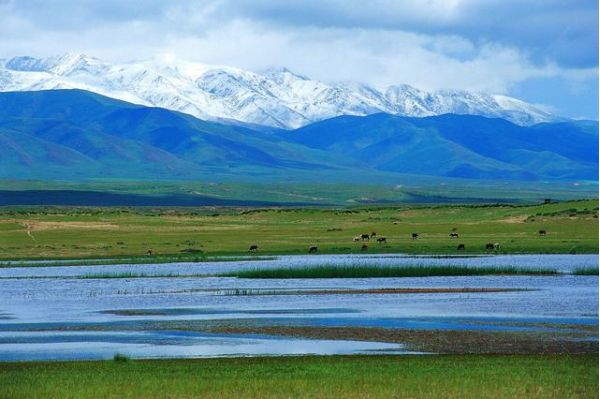 倒淌河景區(qū)內(nèi)建有紀念碑、帳篷城、風力金輪,在這里,可以看河水靜靜流淌,也可以騎馬射箭,馳騁青藏草原。