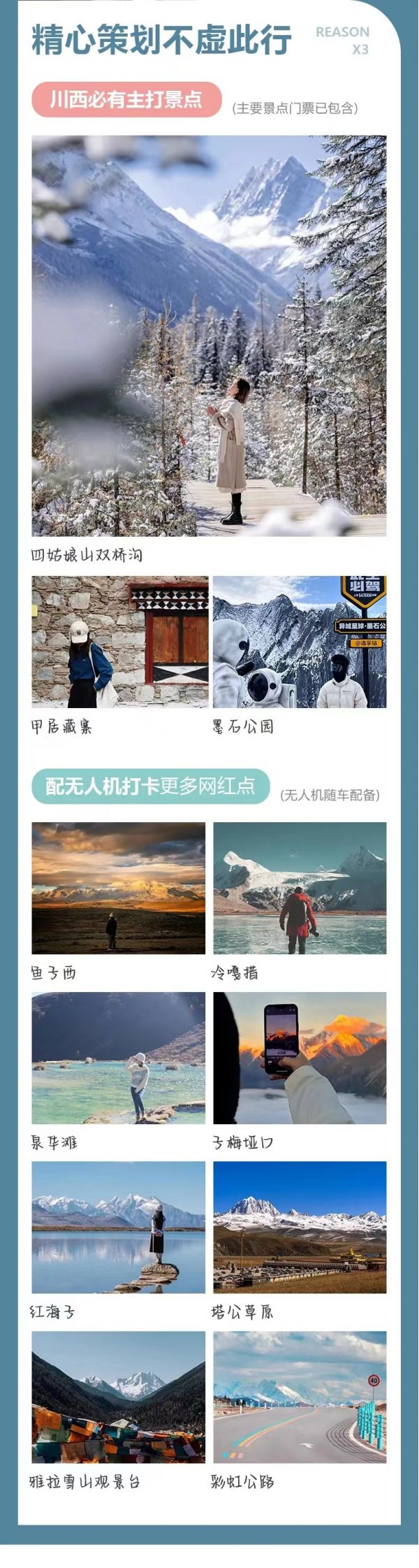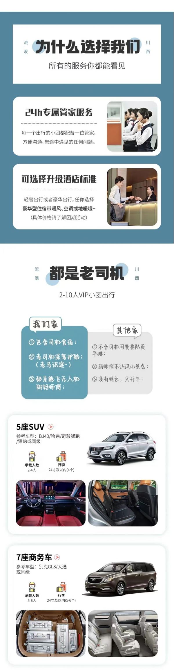 私人訂制:我們業(yè)務(wù)范圍囊括了全國各大城市,川西、西北、新疆、西藏,在路上永遠有我們的身影。我們將為每一個有定制需求的你策劃出獨屬于自己的完美旅行。