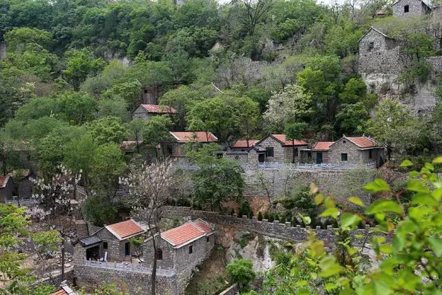 最讓人驚訝的莫過于建于懸崖峭壁上的房屋。村莊三面環(huán)山,以斷崖為障,隱于樹木之間。各種石頭砌成的房子,依山就勢,高低錯(cuò)落,或依傍于懸崖旁,或坐落于巨石之上,懸崖最高處達(dá)60余米。從山下望上去,房子就象掛在天上,青石板路圍著山腰轉(zhuǎn)了幾轉(zhuǎn),好像絲帶在山間飄舞,所以村子得“天上的村落”之美名。