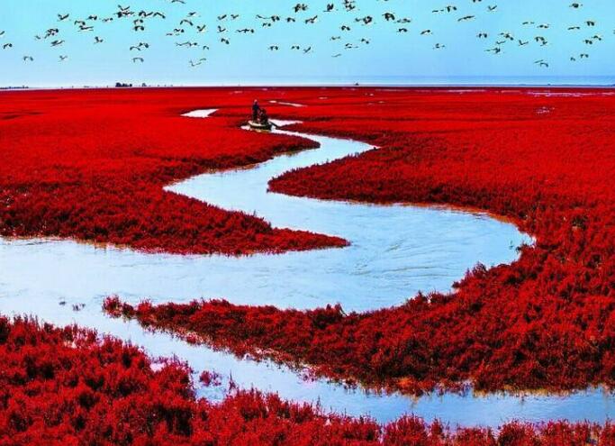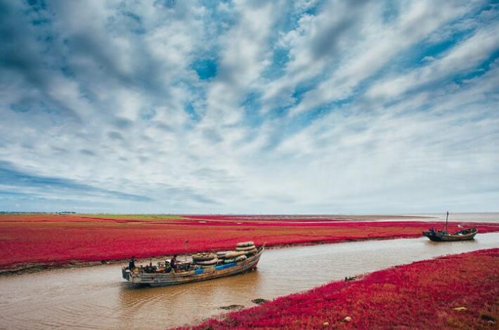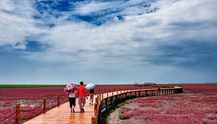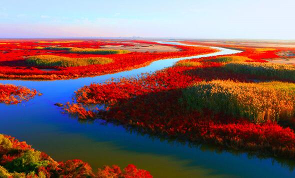游覽后午餐,乘車前往我國北方最大的濱海濕地城市—盤錦市,抵達盤錦后前往游覽【盤錦紅海灘廊道】(游覽約3小時),紅海灘地處遼河三角洲濕地,位于盤錦市西南海濱,是由大片紅色的堿蓬草形成的著名濕地,紅海灘國家風景廊道是紅海灘面積最大的景區(qū),在這里你可以漫步于木棧道、看紅如熾焰的堿蓬草在海岸線上無限延伸,而紅海灘遠處的油井在夕陽下更是一副迷人的畫卷,秋天來此還能看到金黃色的稻田與紅海灘相呼應(yīng),以及成群的候鳥展翅于灘涂的深處,游覽后晚餐,晚餐品嘗盤錦稻香河蟹宴,晚餐后入住酒店休息。