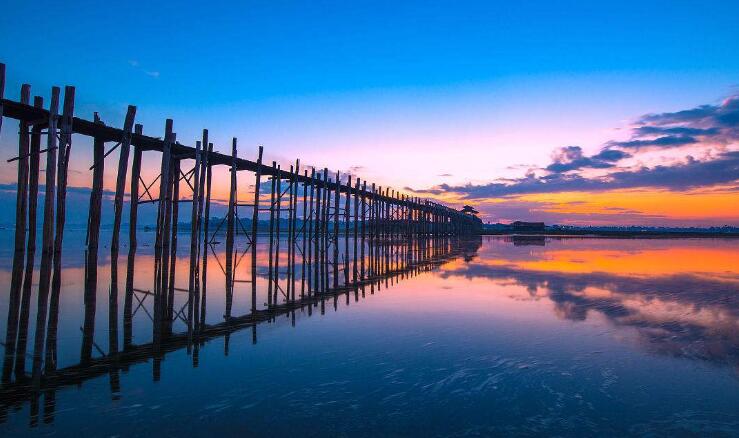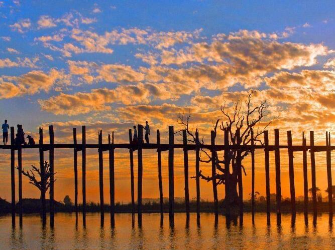飯店內早餐后,乘車前往曼德勒市西南郊的【烏本橋】,此橋全長2千余米,全部由柚木建成,又稱“情人橋”,至今已有2百多年的歷史;橋上當地行人和紅衣僧侶悠閑往來,小販攤商兜售特產,奶茶館掩映在古樹如傘的巨大樹冠之下,平和中又充滿生活的情趣。參觀在其面前前往橫跨大河的“情人橋”,全橋總長1200公尺,全部由柚木建成,又稱柚木橋。參觀緬甸特產【翡翠玉】。乘機前往黑河。抵達后,乘車前往艷麗湖。抵達湖邊的娘惹鎮(zhèn)后,換乘當地特色的小船,前往建于水邊的木屋酒店。入住后,用晚餐,并欣賞當地【民族歌舞表演】。